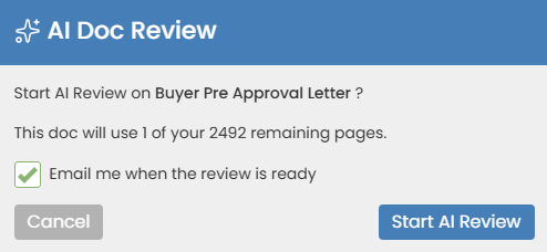 Start an AI Doc Review scan on any document that has been uploaded and assigned to a transaction.