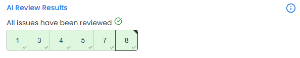 When the review is complete, all page numbers turn green and the Summary confirms all issues have been reviewed.