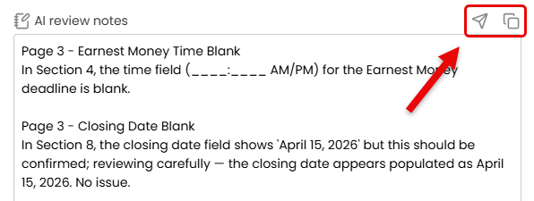 Next to the AI Review Notes, click [Send] to email your notes or [Copy] to copy them to your clipboard.